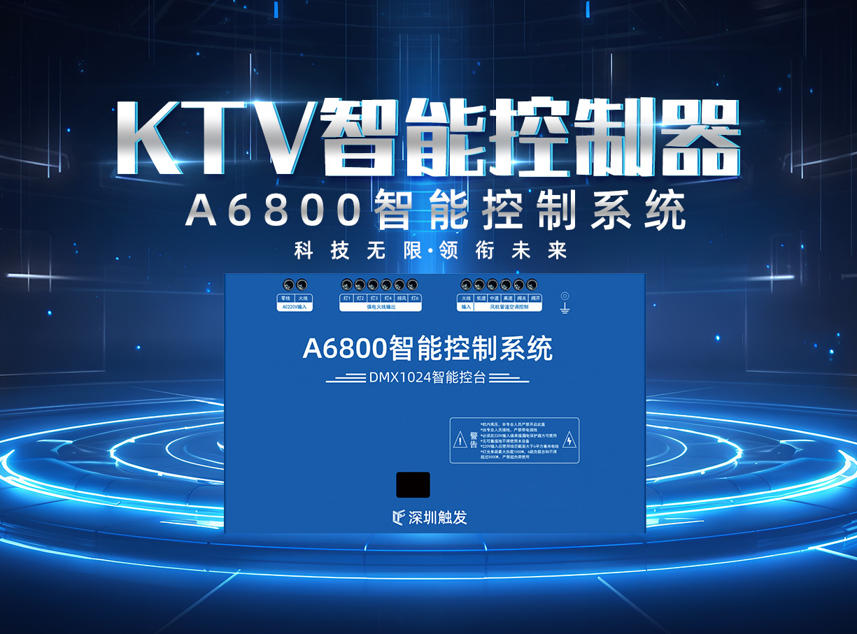 A6800KTV智能控制器,集成多项控制功能于一体,可控制照明灯光,512 信号效果灯、RGB LED灯带、全彩 LED 灯带、空调、排风、调光、服务灯、功放、卡拉 OK音乐播放控制、摇麦信号检测、音频检测及无线控制等功能,是一款高度集成的 KTV智能控制设备。